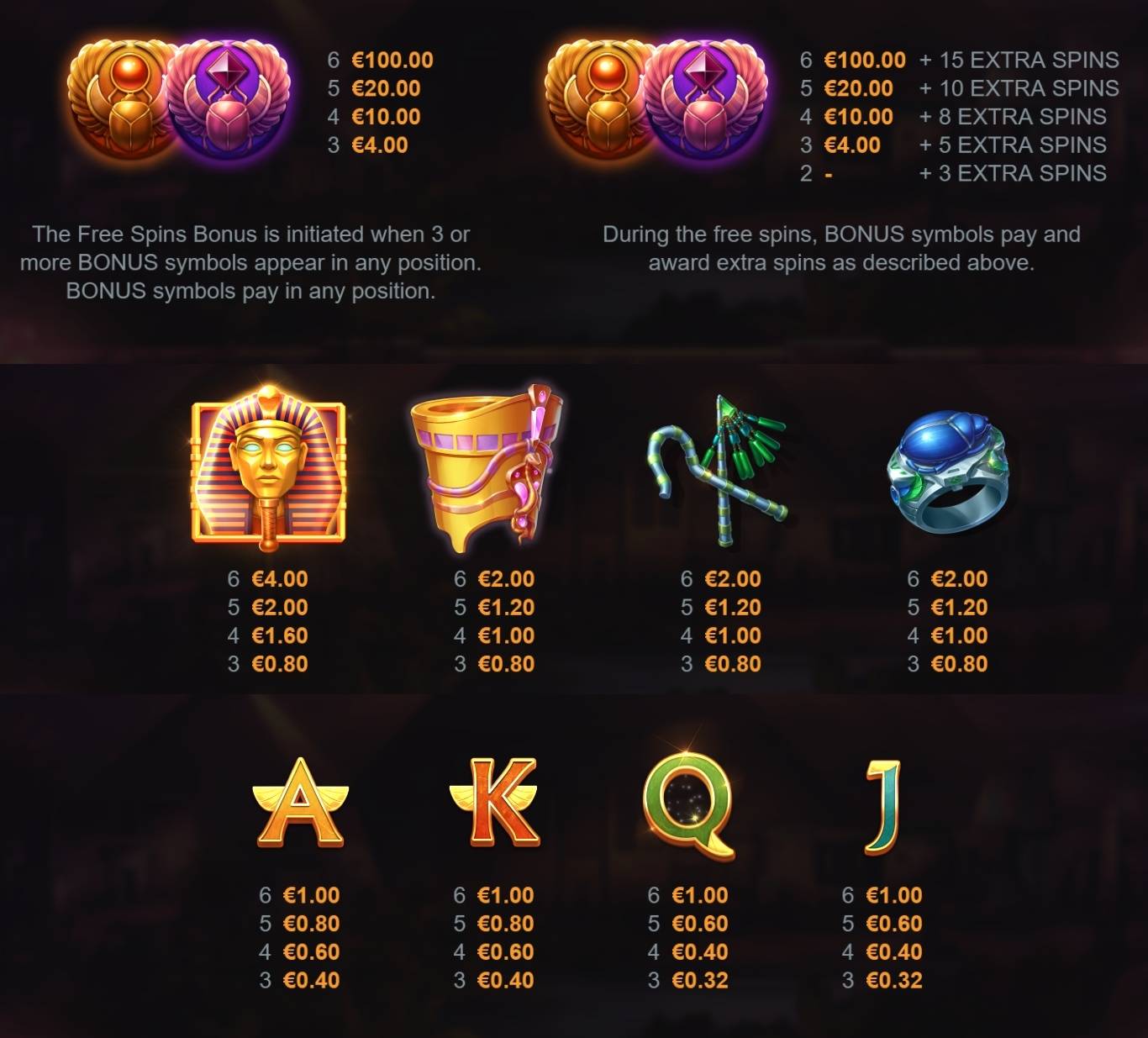 Experience the Flaming Scarabs slot online for free in demo mode. No download required to enjoy this thrilling game. Full game details, image gallery, and video demonstration included.