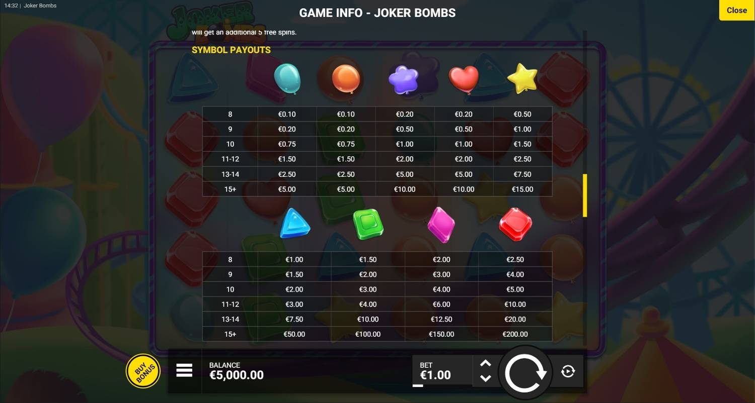 Experience the Joker Bombs slot online for free in demo mode. No download required to enjoy this thrilling game. Full game details, image gallery, and video demonstration included.