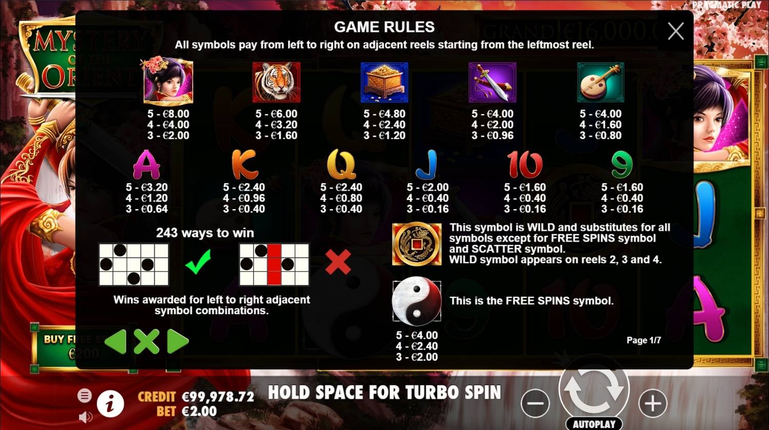 Experience the Mystery of the Orient slot online for free in demo mode. No download required to enjoy this thrilling game. Full game details, image gallery, and video demonstration included.