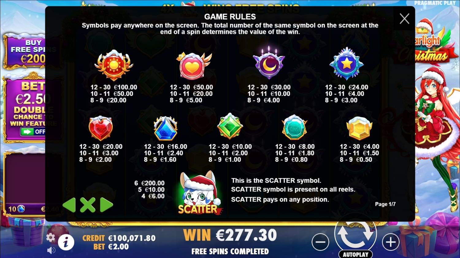 Experience the Starlight Christmas slot online for free in demo mode. No download required to enjoy this thrilling game. Full game details, image gallery, and video demonstration included.