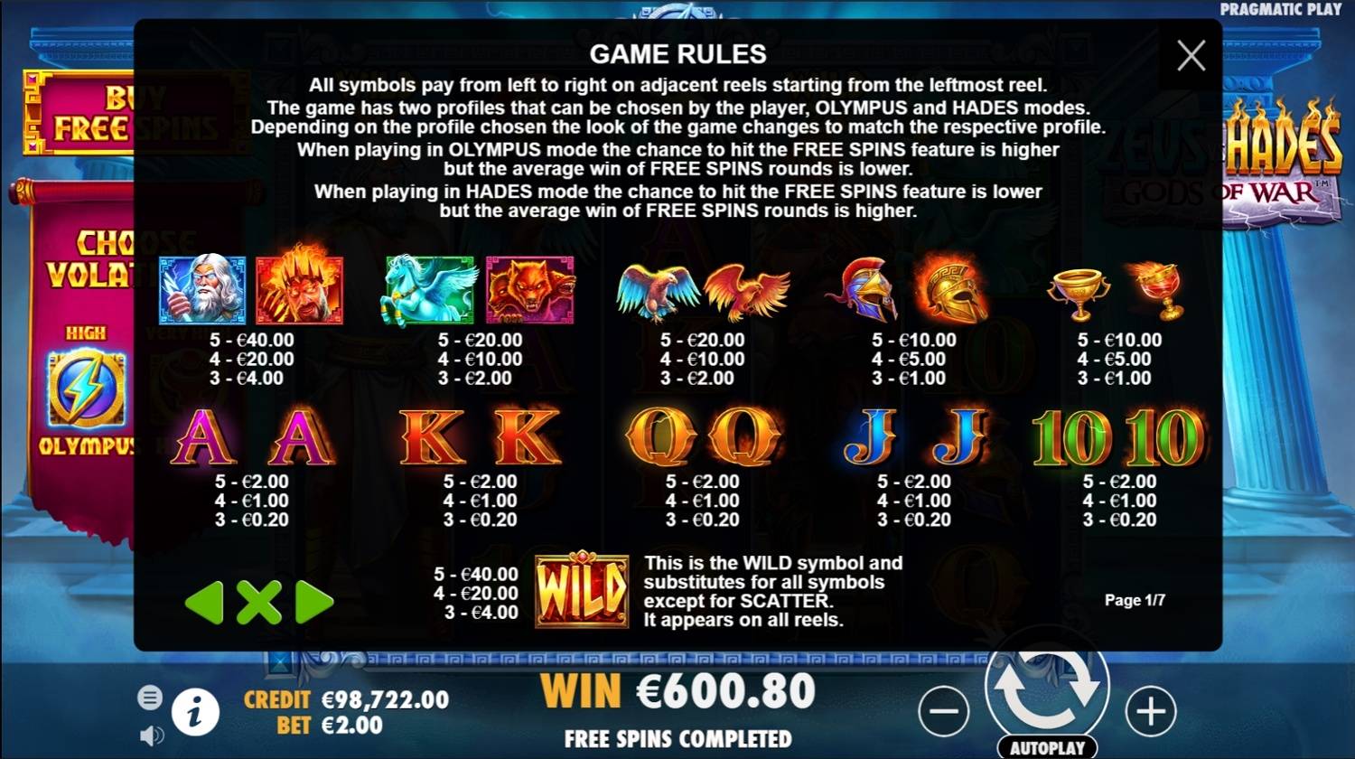 Experience the Zeus vs Hades: Gods of War slot online for free in demo mode. No download required to enjoy this thrilling game. Full game details, image gallery, and video demonstration included.